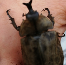 こちらはサビイロカブトなのですが,この時までは元気だったのですがその後☆になってしまいました。エアコンの管理が不十分だったのかもしれません。同様にオオクワのオスが2匹も☆になってしまい,現在はオスが4のメスが10というバラスンになってしまいました。
