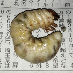 この幼虫は息子たちが昆虫くじで当てたシロカブトになりますね。他ははずれでツシマヒラタの幼虫でした。